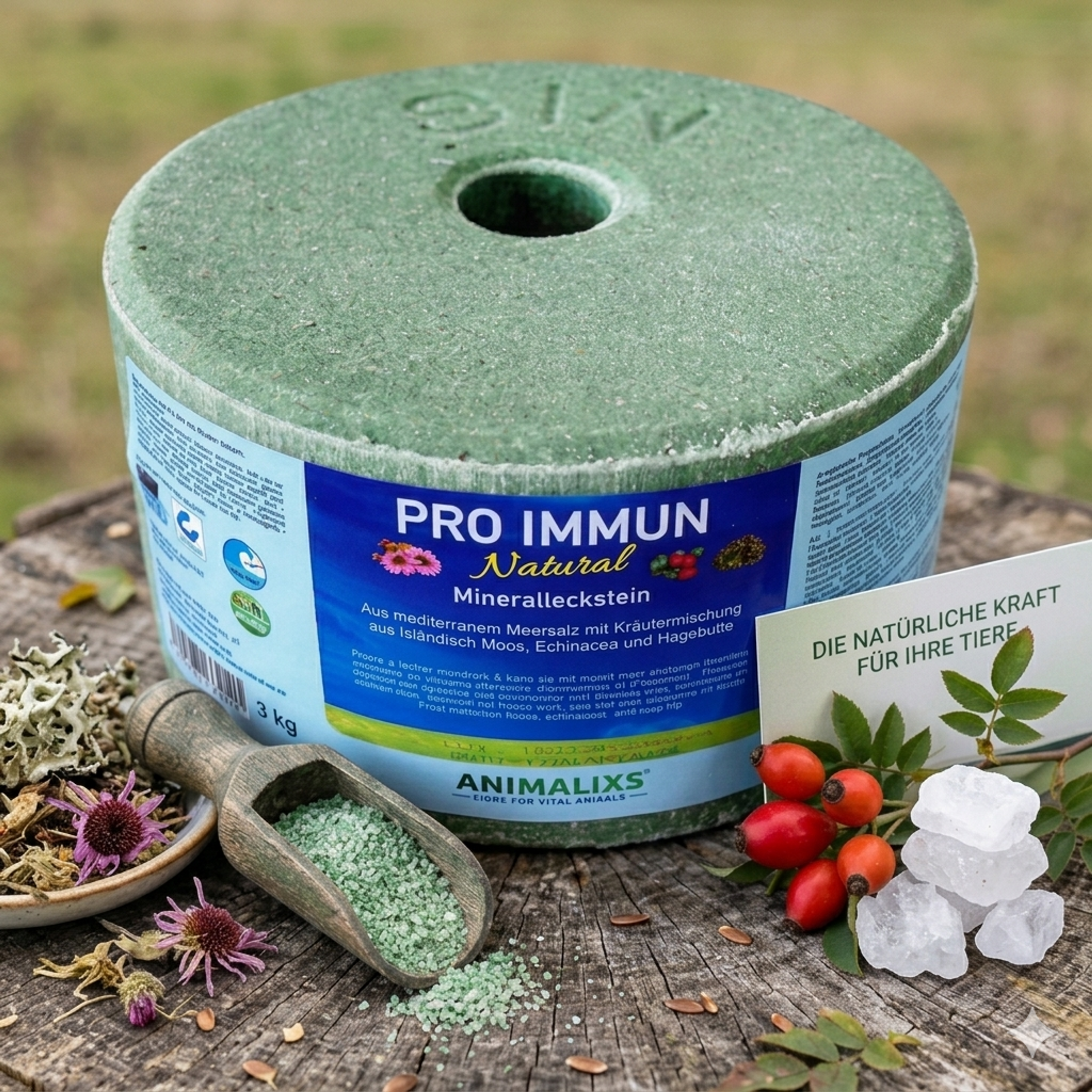 Support and reward in one: HerbaBlock PRO IMMUN is far more than a standard mineral lick. It combines essential minerals with the concentrated power of nature, featuring Iceland Moss, Echinacea, and Rosehip. Specifically formulated for the equine immune system, this recipe targets the body's natural defenses and promotes respiratory well-being—perfect for cold, damp seasons or high-dust environments.