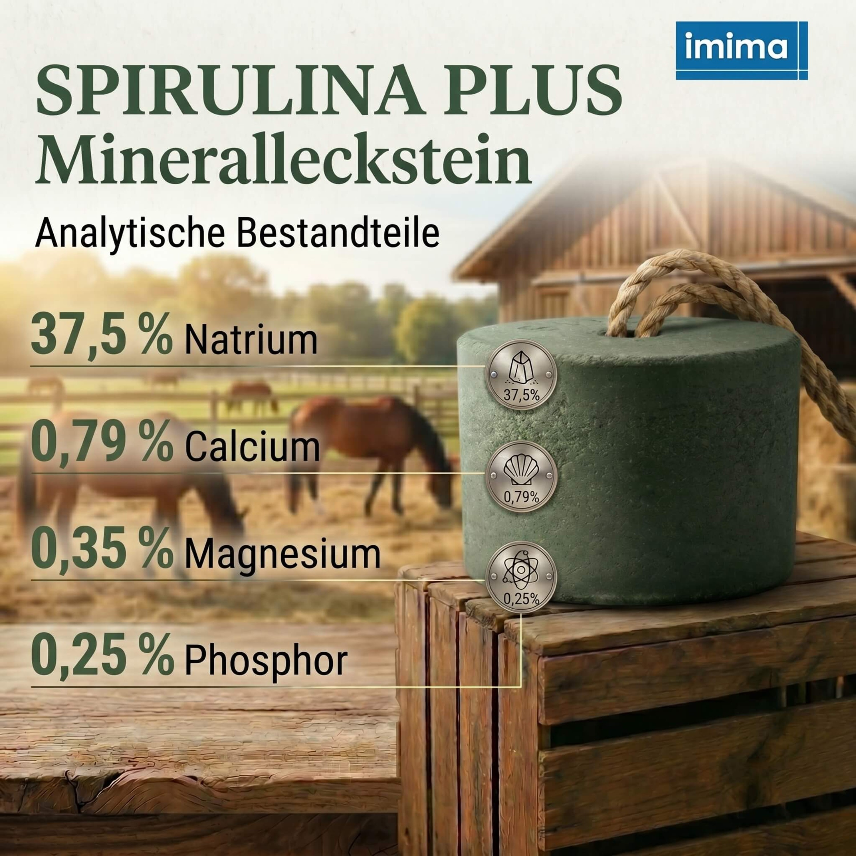 - Analytische Bestandteile: 37,5% Natrium, 0,79% Calcium, 0,35% Magnesium, 0,25% Phosphor